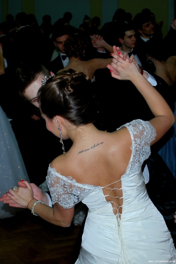 але цей бал..ні..його назвати балом не можна..) гідне слово, правда ж?) та цей захід у ВНУ назвати балом не повертається язик) невже на такі чарівні вечори ходять з вип'яченими грудьми і сукнями досить таки вульгарними на вигляд? аж ніяк) я не кажу про всіх дівчат, але за більшість..та і підготовка не на повну..погодтесь..