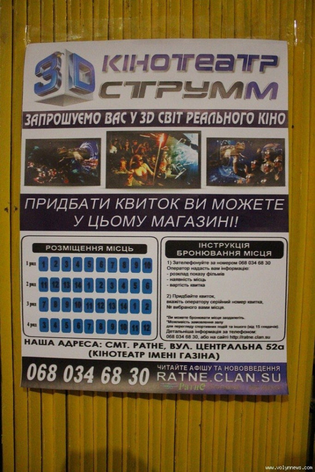 Кінотеатр поновив роботу у Ратному 11 жовтня. Останнє кіно у ньому показували 19 років тому.