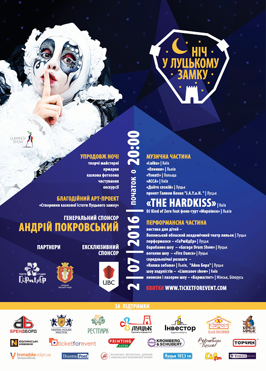Казку впродовж ночі творитимуть «Garage Drum Show» (Луцьк), театр «ГаРмИдЕр» (Луцьк) із серією фантастичних перформансів, театр «Fire Dance» із вогняною містерією, творча група «Княжа забава» (Львів) із середньовічними розвагами, театр на ходулях «Liumanovshow» (Київ), арт-проект «Бармаглот» (Мінськ, Білорусь) із неоновим і лазерним шоу.