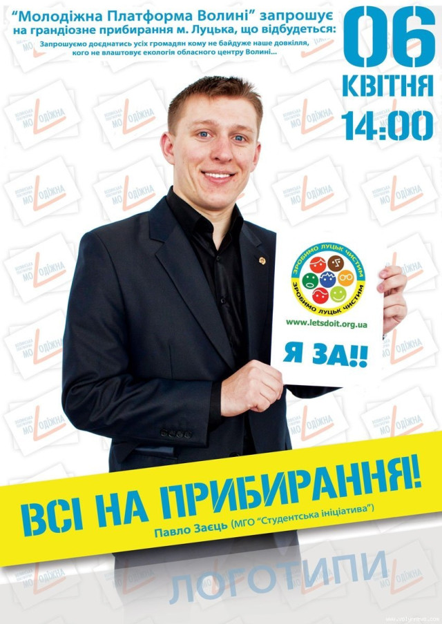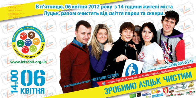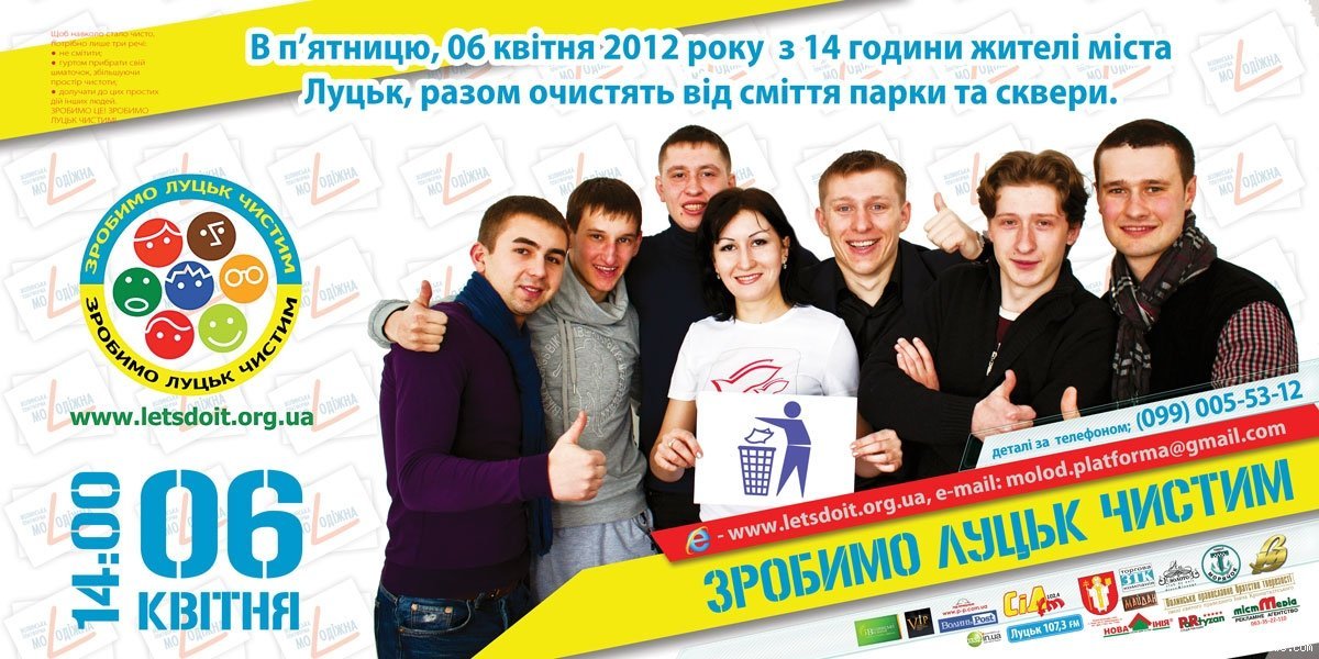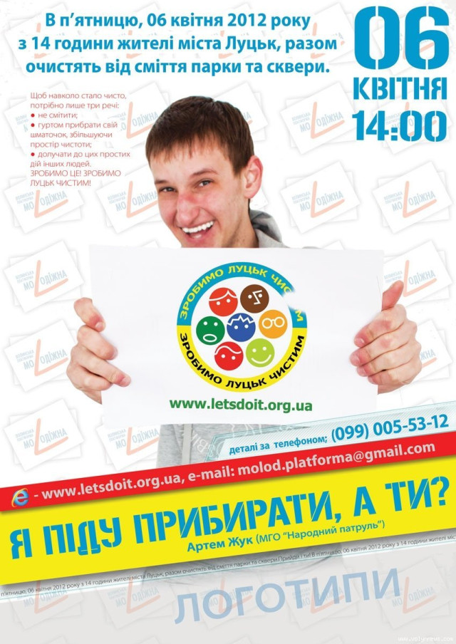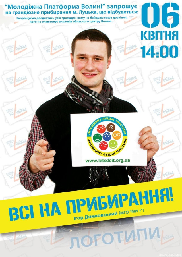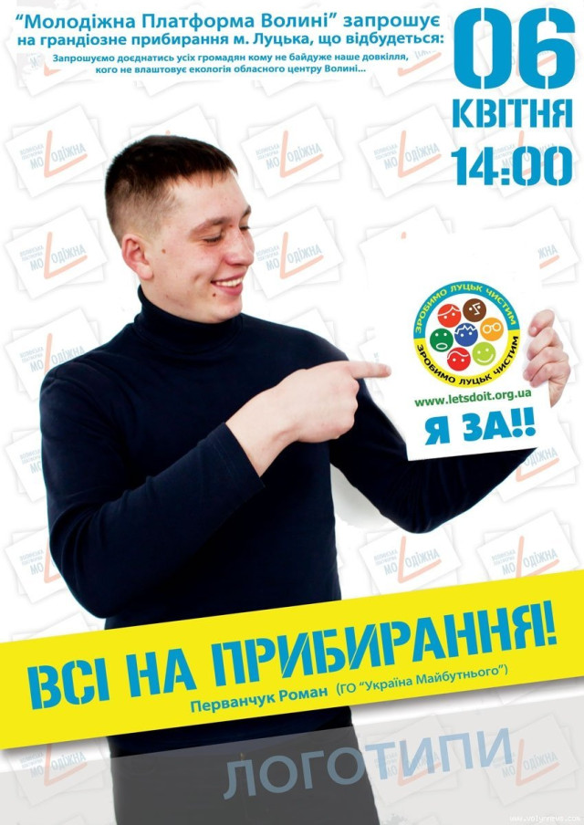 Як розповів один із організаторів акції Захар Ткачук, до прибирання міста зголосилося чимало відомих у Луцьку людей. Багато із них погодилися сфотографуватися для пропагування прибирання у Луцьку. Так, згідно із планами організаторів, афіші мали бути розташовані на сіті-лайтах у місті.