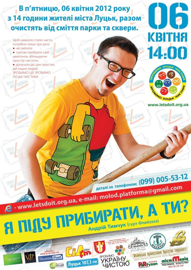 Прибиратимуть місто і відомі у Луцьку музиканти. Так, до акції долучився гурт «ФлайzZzа» на чолі із Андрієм Тимчуком.