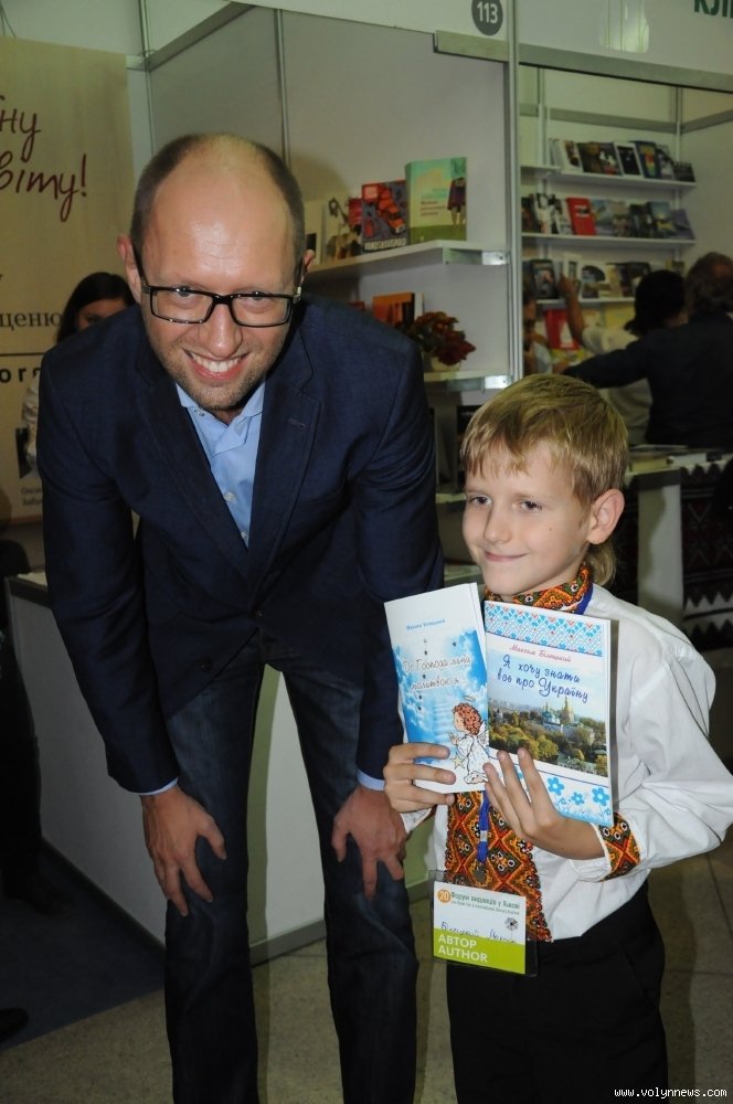 Також придбав у народного депутата, колишнього політв’язня Левка Лук’яненка його видання «Сповідь у камері смертника», попрохавши у автора автограф. Книгу самого Яценюка «Банківська таємниця часів Помаранчевої революції» роздавали біля його стенду всім охочим безкоштовно.