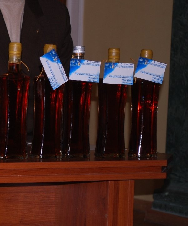 Загалом на продаж виставили п’ять пляшок медового напою, який розлили позавчора. Всі бажаючі перед початком аукціону могли продегустувати медівку на смак.