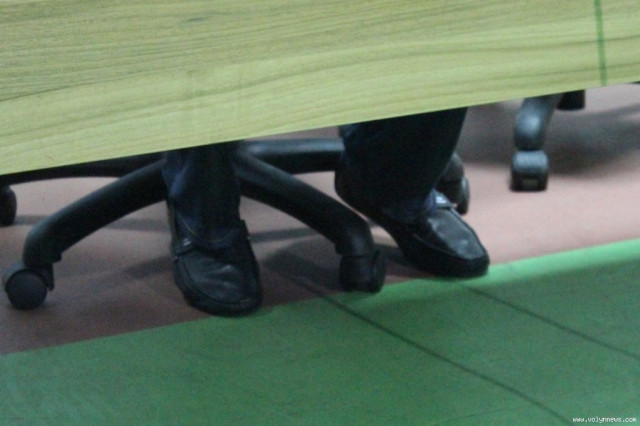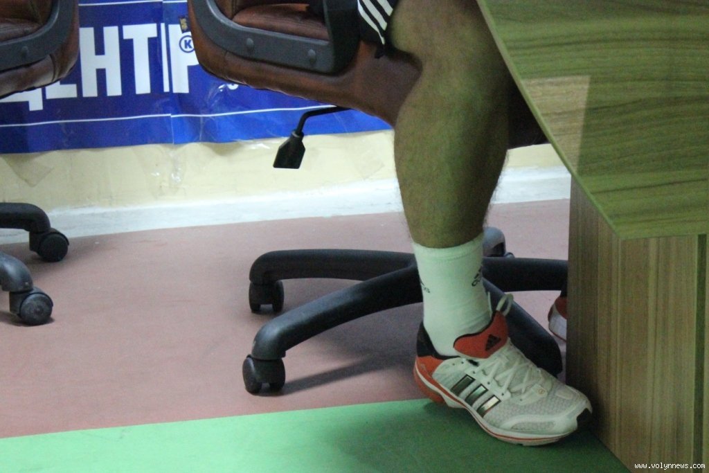 Поруч із ними – ноги прес-аташе ФК «Волинь» Юрія Конкевича.