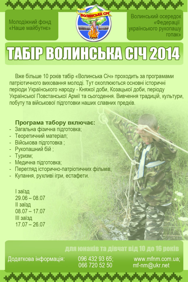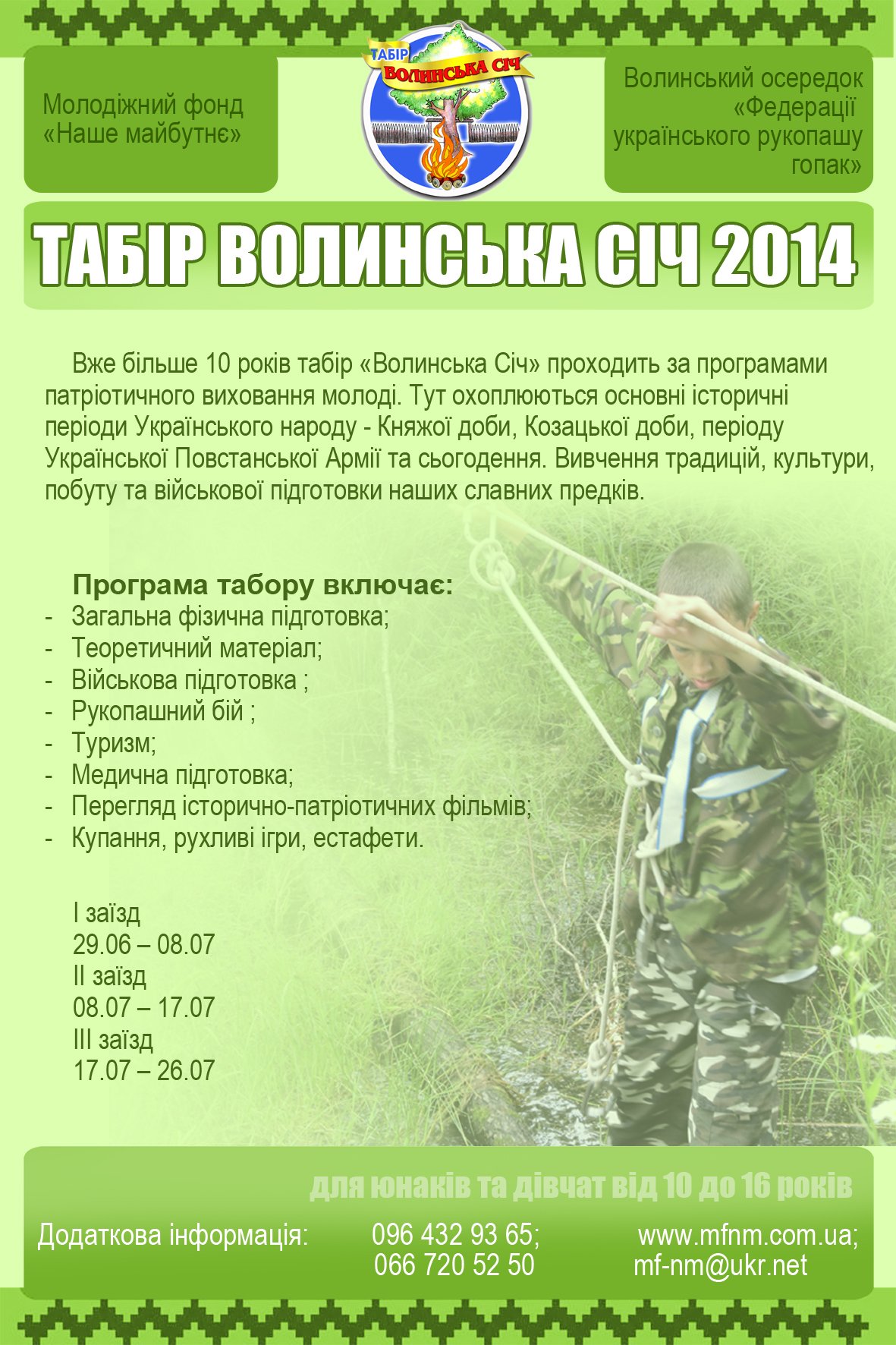 Табір «Волинська Січ»запрошуєюнаків та дівчат віком від 10 до 16 років на активний відпочинок, повідомили організатори заходу.