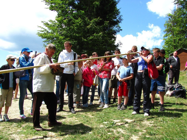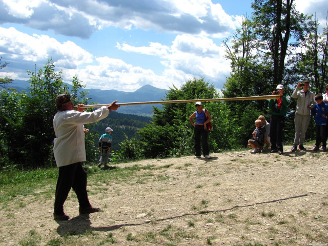 Спробувати заграти на справжній гуцульській трембіті всім охочим - групі волинян, які відпочивають у Карпатах, – пропонував карпатський трембітар Василь Мойсейчук.
