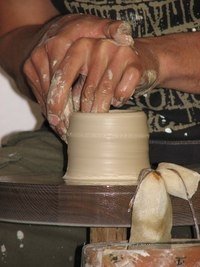 Хлопець розповів, що коли вперше ставав за гончарний круг, доводилося по кілька тижнів ходити вимащеним глиною з ніг до голови. Пригадує, що перші вироби були грубими і нездалими, та з часом майстерність відточувалася.