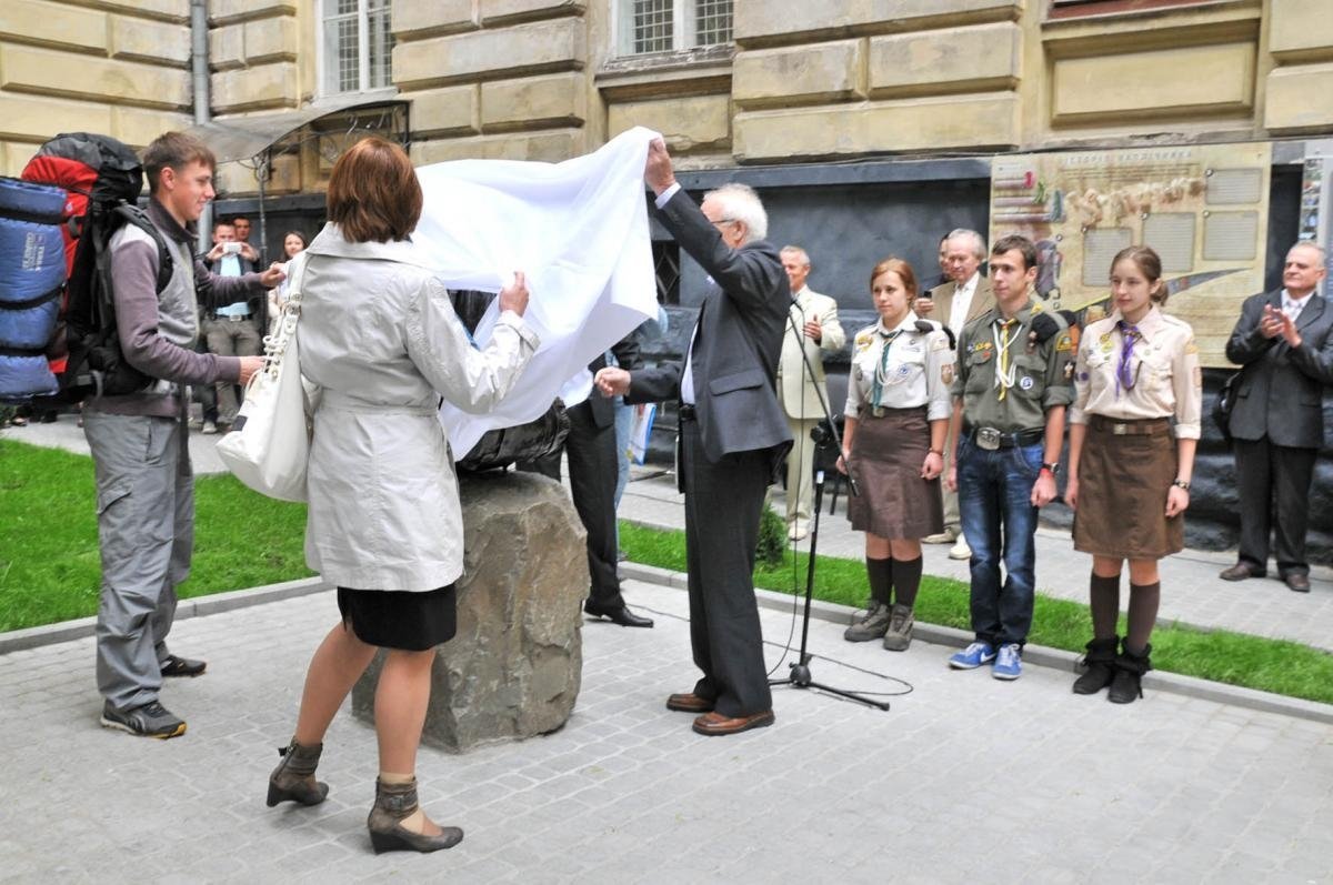 Почесне право відкрити памʼятник надали ректору Франкового вишу Іванові Вакарчуку, проректору з науково-педагогічної та виховної роботи Звениславі Мамчур, а також голові студентської ради географічного факультету Андрієві Мичку.
