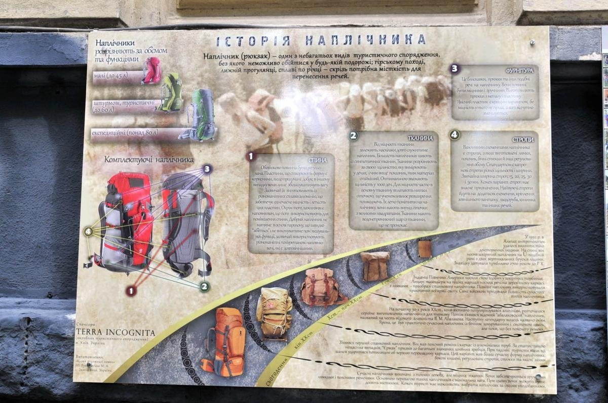 Памʼятник ‒ точна копія сучасного туристичного наплічника, який виготовляє один з національних виробників туристичного спорядження. Він заввишки більше метра та встановлений на постаменті з пісковику.