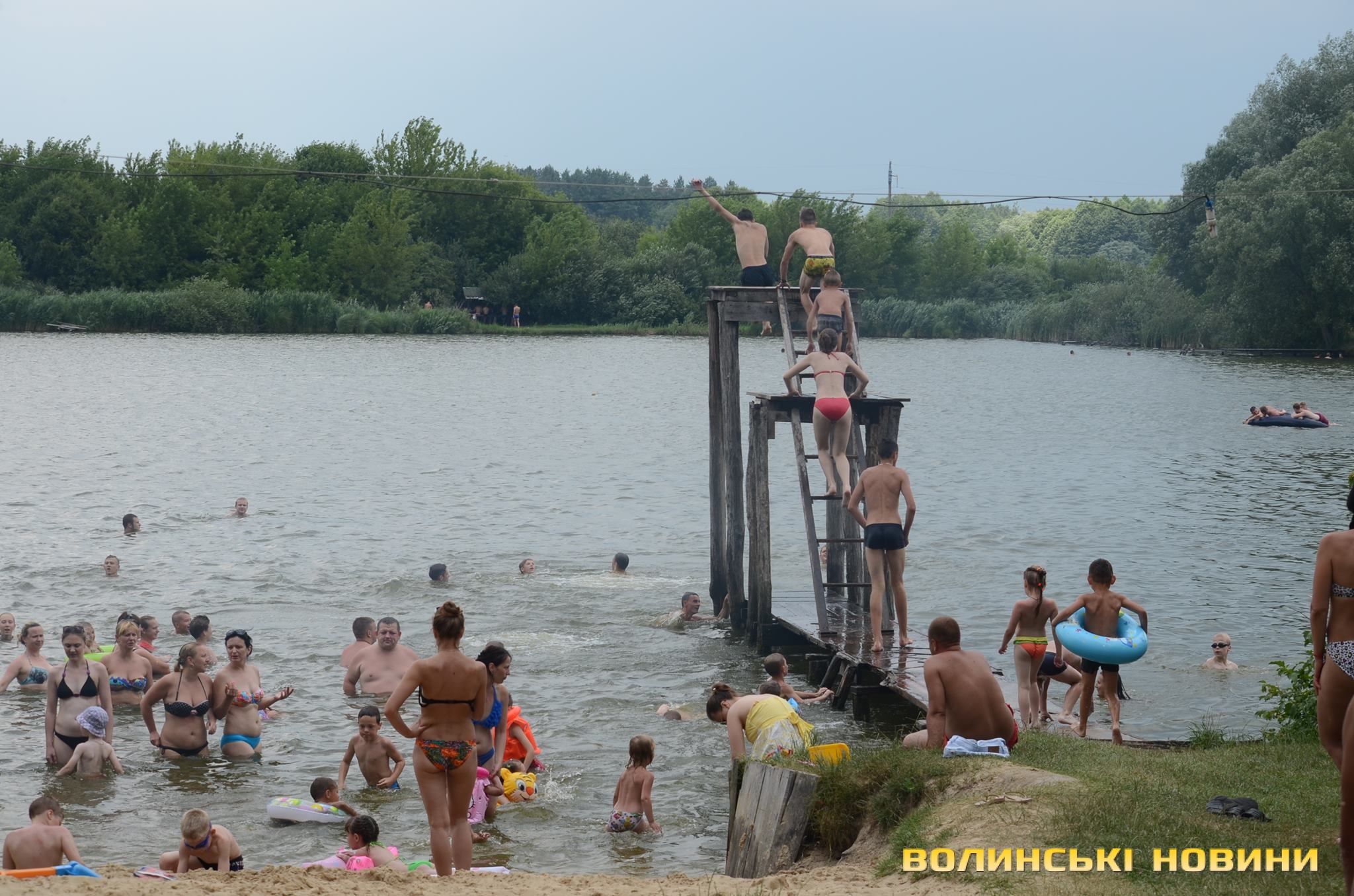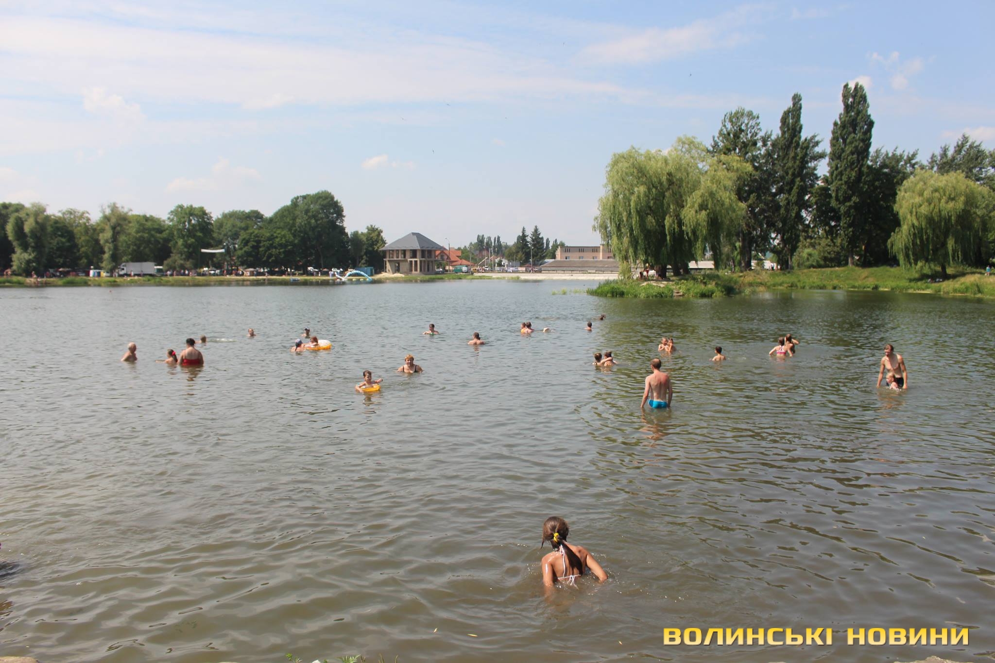 На Теремнівському пляжі у неділю, 3 липня, проходив обряд хрещення релігійної громади. Святкова атмосфера, музичний супровід, колективні молитви, безліч квітів та віряни у святковому вбранні розташувалися на правій частині ставка.З лівого боку водойми відпочивали й інші містяни. Молодь, сім’ї з дітьми та чотирилапими улюбленцями радісно хлюпались у воді.До слова, пляж у Теремно – один із найбрудніших. Сміттєві баки годі шукати, зате сміття – хоч греблю гати.Центральний пляж у парку імені Лесі Українки також був переповнений відпочиваючими. Тут працюють рятувальники, які слідкують за порядком поводження у воді. Облаштовані спуски до водойми, роздягальні, є спортивний майданчик, де всі охочі можуть поєднати пасивний відпочинок із активним.Ще один популярний пляж передмістя знаходиться у селі Сирники Луцького району. Місце для відпочинку гарно облаштоване та може прийняти багато відпочивальників на весь спекотний день. Циркуляцію водойми тут регулює природне джерело, тому вода доволі чиста. Навколо ставка є три громадські туалети, пірс для пірнання та альтанки.