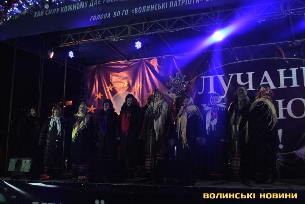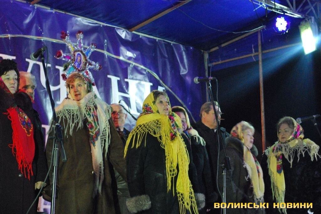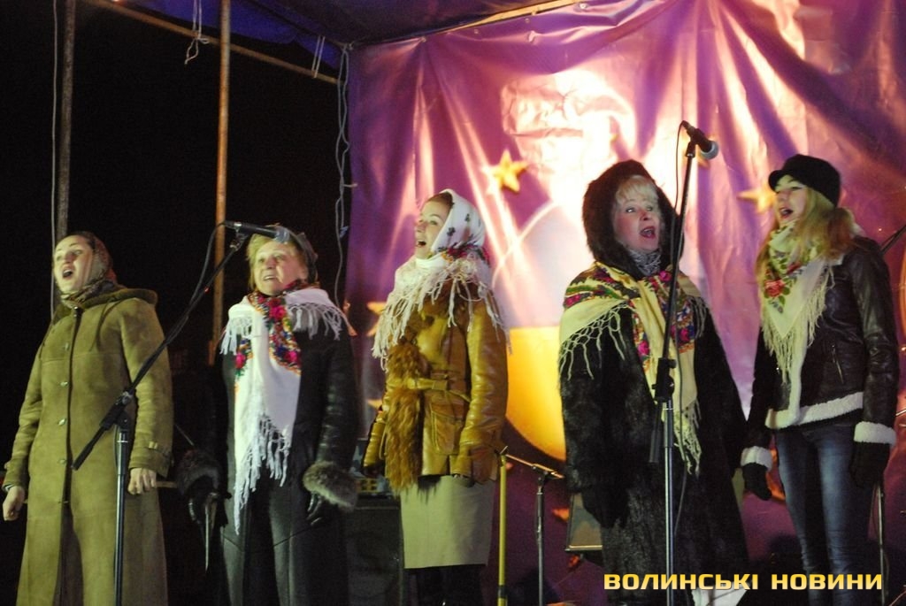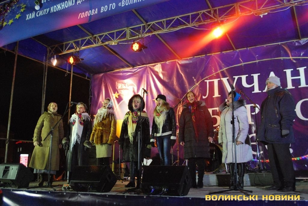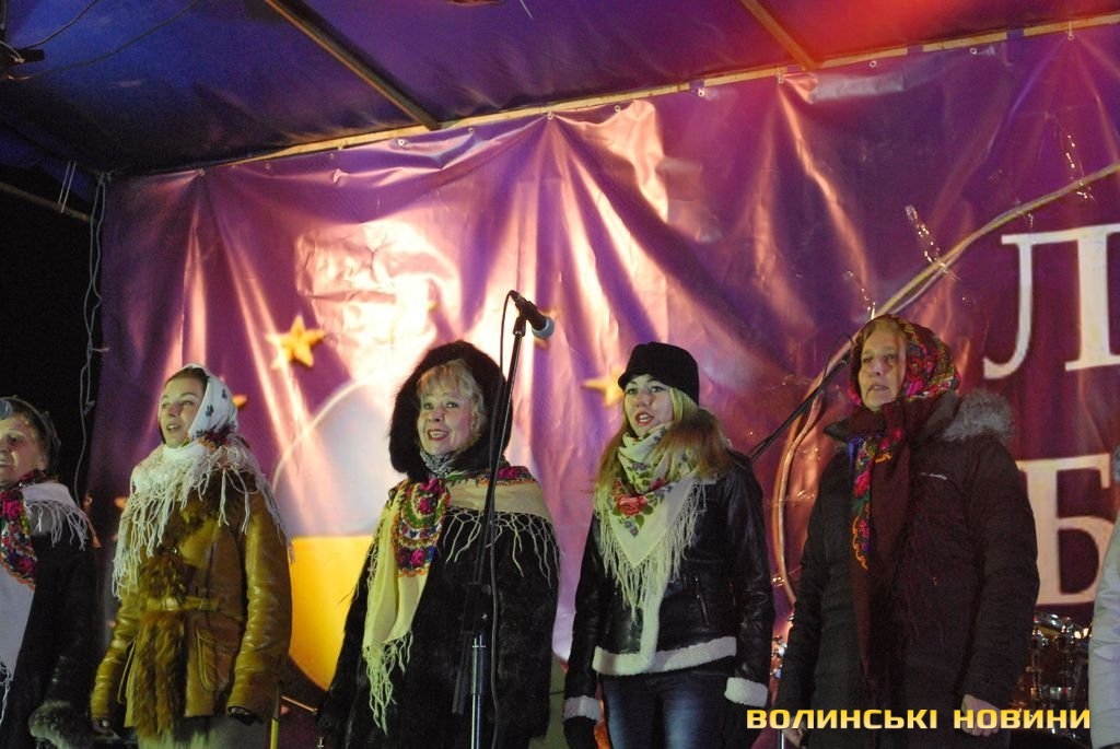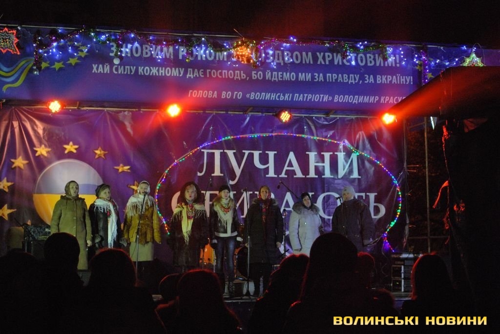Першими на Євромайданівській сцені з побажаннями щасливих свят виступили учасники ансамблю «Джерела Волині». Для лучан також співали щедрівки та святкові пісні квартет «Акорд», гурт «Весела родина» та багато інших виконавців і творчих колективів.