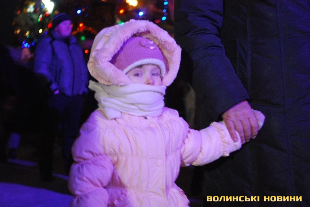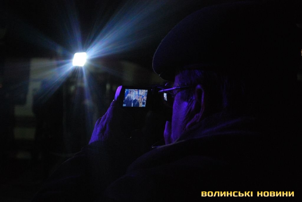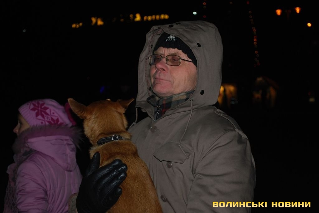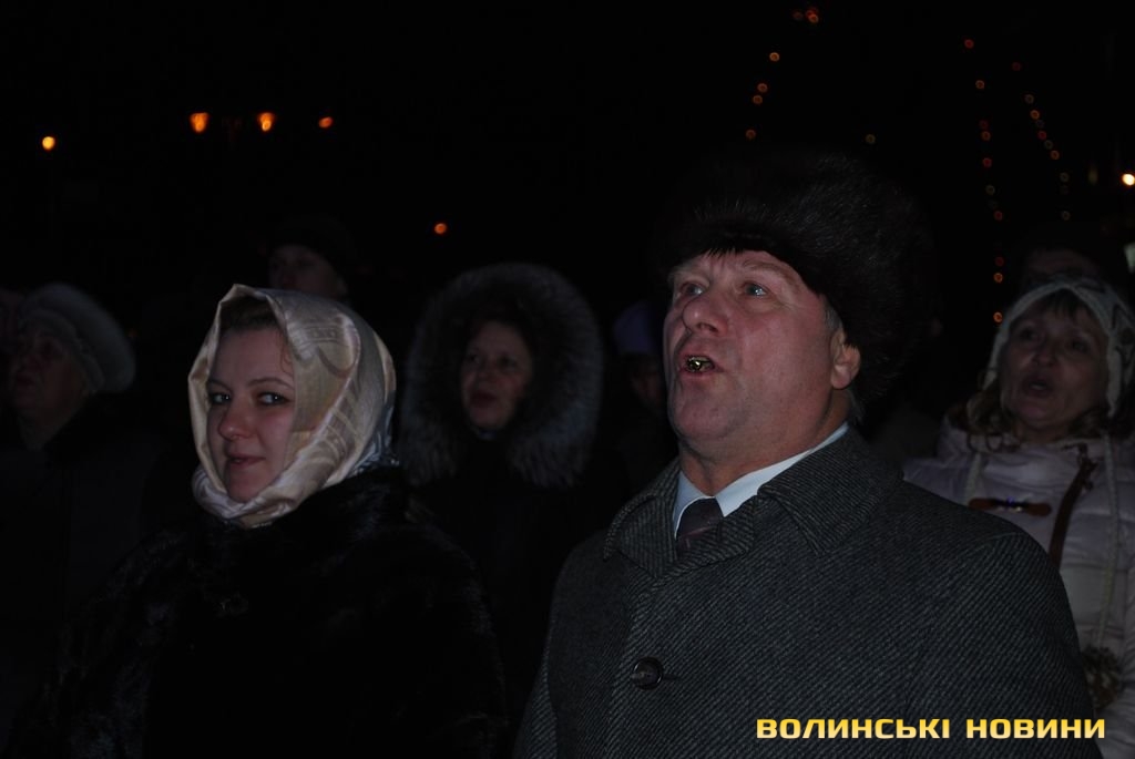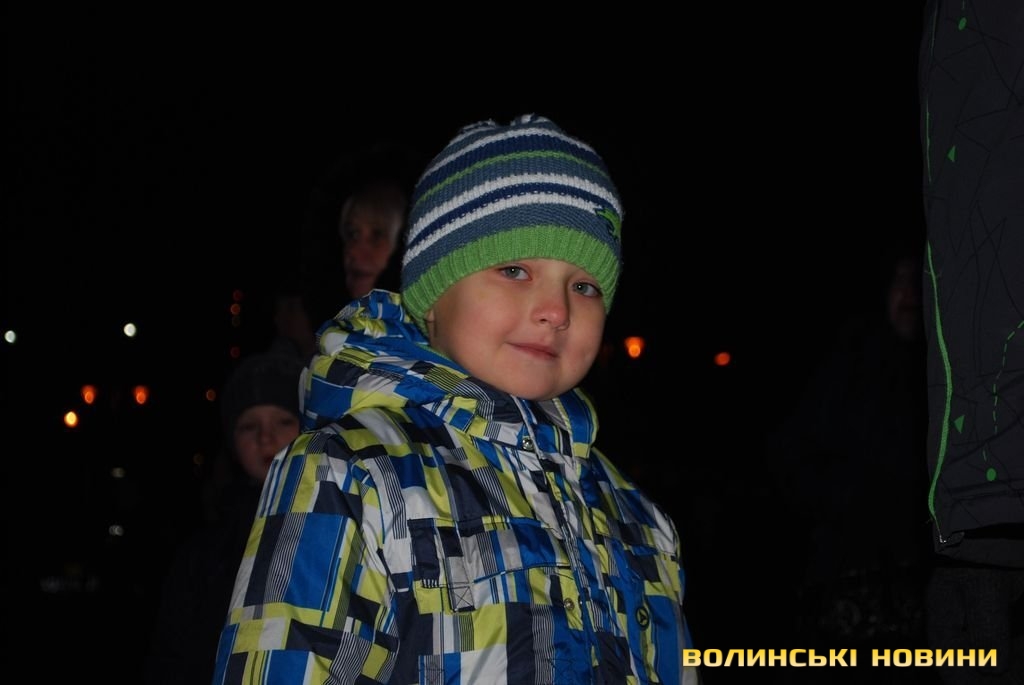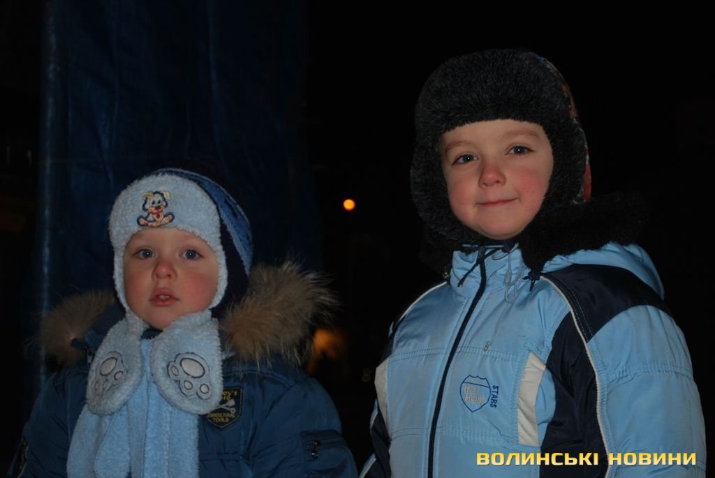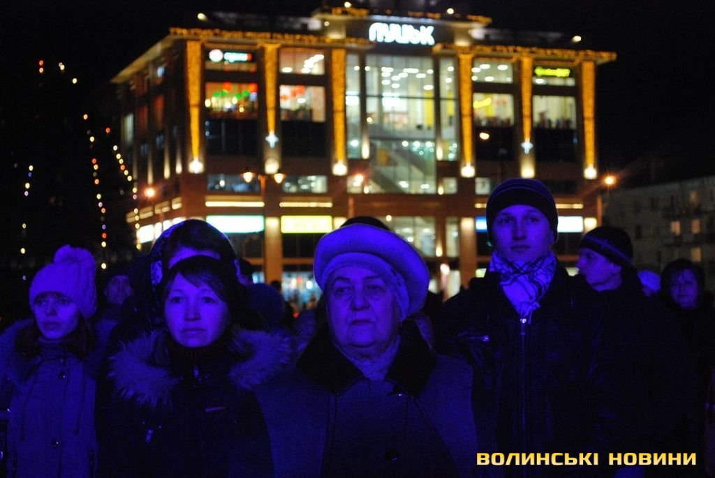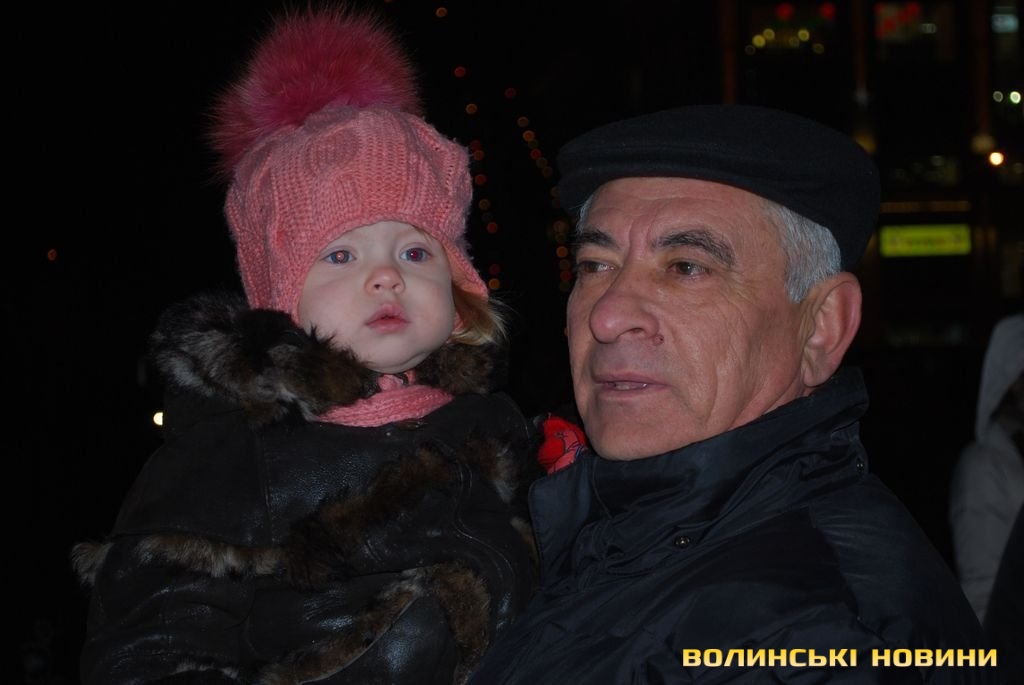 Незважаючи на пронизливий вітер та мінусову температуру повітря, на центральній площі Луцька зібралось чимало людей. Приходили навіть цілими сім’ями.