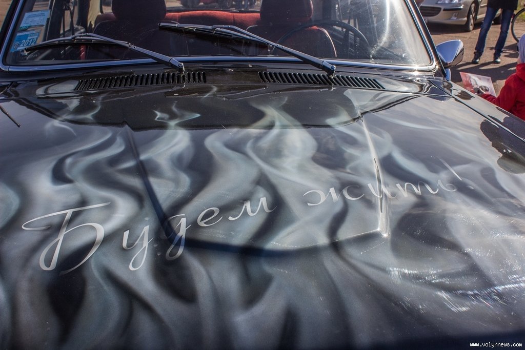Чималий інтерес гостей викликав і цей чорний «ГАЗ-24». Його власник, надихнувшись легендарним фільмом «В бой идут одни старики», вирішив зробити з неї полотно для аерографії. І не прогадав – назвати цю «Волгу» автомобілем не повертається язик. Це - справжня картина.