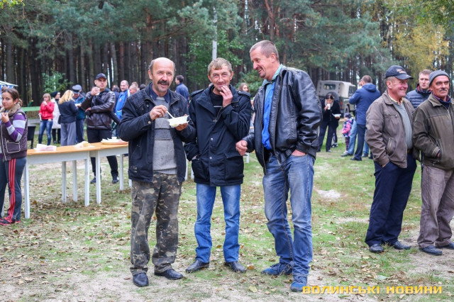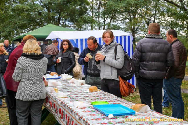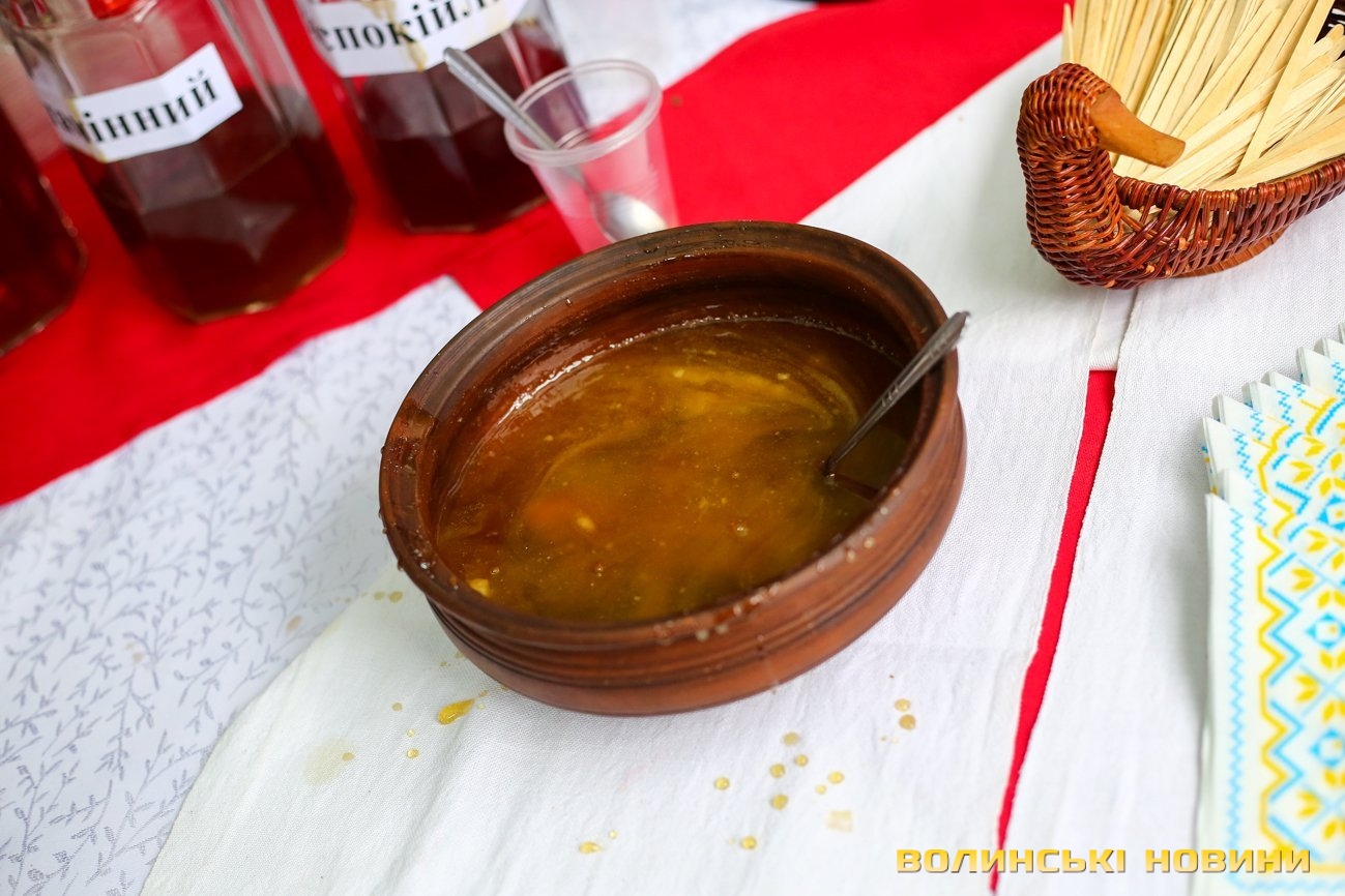 Тим часом, присутніх запрошують частуватись гарячими стравами. «За рахунок організаторів!», - наголошують учасники. Відтак, всіх охочих нагодували кулішем з м’ясом, юшкою з рибою та справжнім трав’яним чаєм з медом – вітамінним, грудним або заспокійливим на вибір.