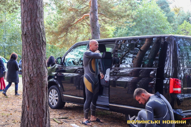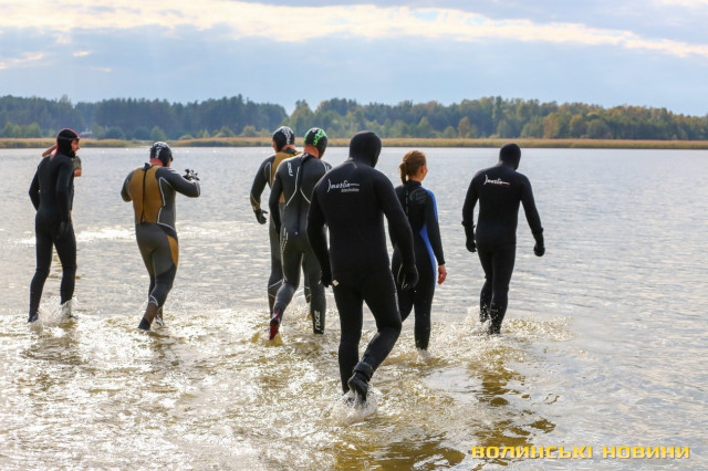 Недовгі збори, переодягання та короткий «міні-брифінг» на березі озера на старті. Ігор Гузь вітає учасників та відразу наголошує – заплив присвячений пропаганді здорового способу життя.