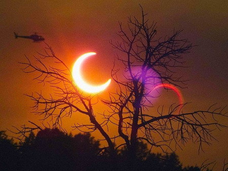 У різних точках планети затемнення виглядає по-різному. Так, жителі західних і центральних штатів США могли спостерігати лише часткове затемнення - на заході Місяць проходив через сонячний диск, залишаючи досить великий «зазор».