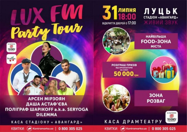 - сайт karabas.com (https://lutsk.karabas.com/ua/lux-fm-party-tour-2)