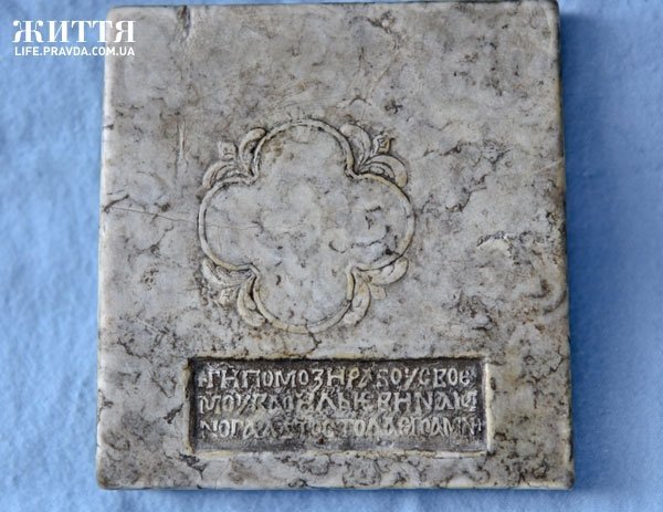 Григорій Полюшко демонструє напис на зворотному боці знахідки «Господи, поможи рабу своєму Василію», написаний старословʼянською.