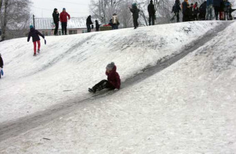 Засніжене бомбосховище у Ковелі стало ковзанкою для дітей
