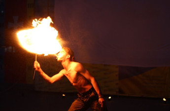 Показ вистав театру тіней «По ту сторону», а також видовищне вогняне шоу, під час якого відбулась благодійна акція зі збору коштів для поранених бійців української армії, відбувся вчора, 13 липня.