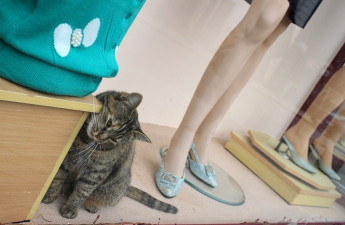 Кицька, господиня якої померла, оселилась у вітрині магазину