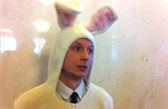 Журналіст прийшов у Верховну Раду в костюмі зайця. ВІДЕО