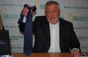 Голова Волинської ОДА Борис Клімчук під час чату на «ВН» залишився без галстука – краватку темно-сильного кольору він подарував одному з користувачів видання