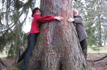 На угіддях Партизанського лісництва Цуманського лісгоспу на узліссі ростуть дві 300-літні ялини. Їх показали журналістам депутати облради під час учорашнього прес-туру Ківерцівським районом.