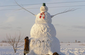 У Рівному зліпили найвищу в Україні снігову бабу. ФОТО