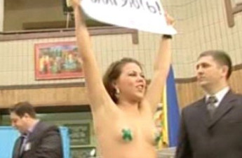 На участок к Януковичу пришли голые девушки. ВИДЕО