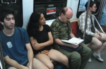 В нью-йоркском метро люди ездили без штанов. ФОТО