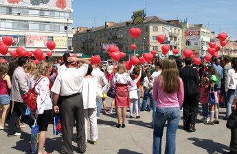 На центральному майдані Луцька у повітря запустили серце із півтори сотні кульок