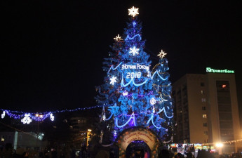 Традиційно в День Святого Миколая на Театральному майдані обласного центру Волині відбулося святкове засвічення тріо головних новорічних красунь
