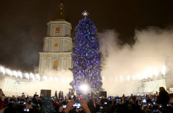 У центрі Києва на Софійській площі запалили головну новорічну ялинку країни