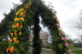 Гігантську великодню писанку з гілок туї, прикрашених квітами, встановили у центрі Шацька, на площі біля районного будинку культури