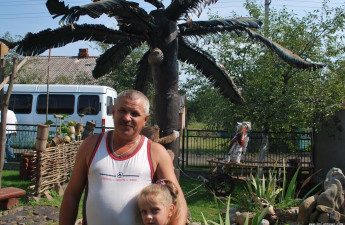 Різьбяр по дереву, власник агросадиби Анатолій Деменік, із села Переспа Рожищенського району, працює пожежником. Але із розмови з ним важко зрозуміти, що саме робота для нього, а що хобі
