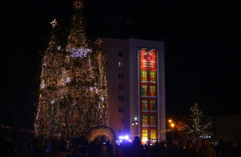 На Театральному майдані Луцька урочисто засвітили тріо головних ялинок, які сяючи золотом, символізують початок циклу новорічно-різдвяних свят