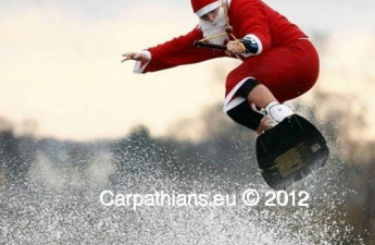 Діди Морози на лижах і сноубордах підкоряли Буковель. ВІДЕО