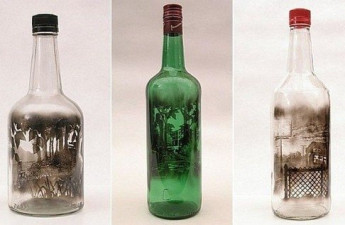Чоловік малює в пляшках димом від свічок. ФОТО