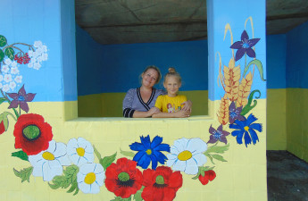 Мама з дітьми розмалювали на Волині автобусну зупинку