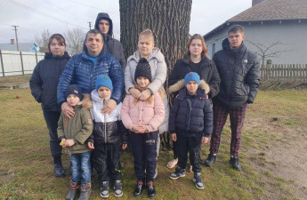 Багатодітна родина Михайла та Оксани Ференців покинула рідне село Середнє Лиманської громади, що на Донеччині, ще 5 квітня. Із вісімдесяти жителів там залишилося хіба десятеро, а вцілілі будинки можна полічити на пальцях. Ворог знищив усе.