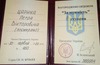 Родині волинського Героя Петра Царика вручили його посмертний орден