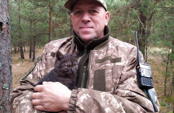 У 100-й бригаді тер оборони Волині служать армійські друзі: боєць Петро з позивним Іванович та його кіт Кирило.