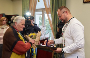 Сьогодні міський голова Ігор Поліщук вручив диплом, посвідчення та нагрудний знак «Почесний громадянин Луцької міської територіальної громади» мамі загиблого Героя Сергія Сулими Галині Федорівні Марцинюк.