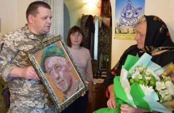 Родині загиблого волинського прикордонника подарували його портрет, виготовлений із 25 тисяч сірників