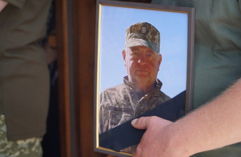 Під звуки сирени, що сповістила про чергову повітряну тривогу, у Володимирі провели в останню путь полеглого 49-річного бійця Володимира Пукалюка.