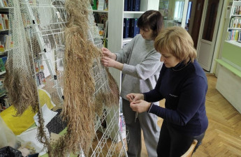 Волонтери та працівники Волинської обласної бібліотеки для дітей плетуть маскувальні костюми «кікімори» для військових.