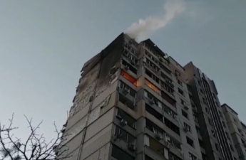 У Києві залишки збитої російської ракети спричинили руйнування та пожежу в багатоповерхівці.