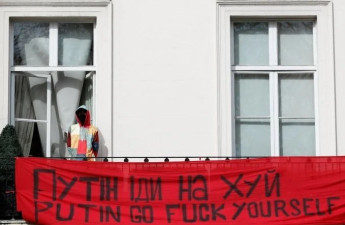 У Лондоні захопили маєток, який може належати російському олігарху Олегу Дерипасці. Протестувальники розгорнули український прапор.