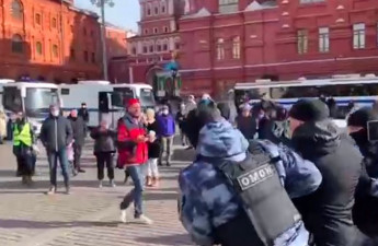 У багатьох російських містах відбулися антивоєнні протести, затримані співали Гімн України